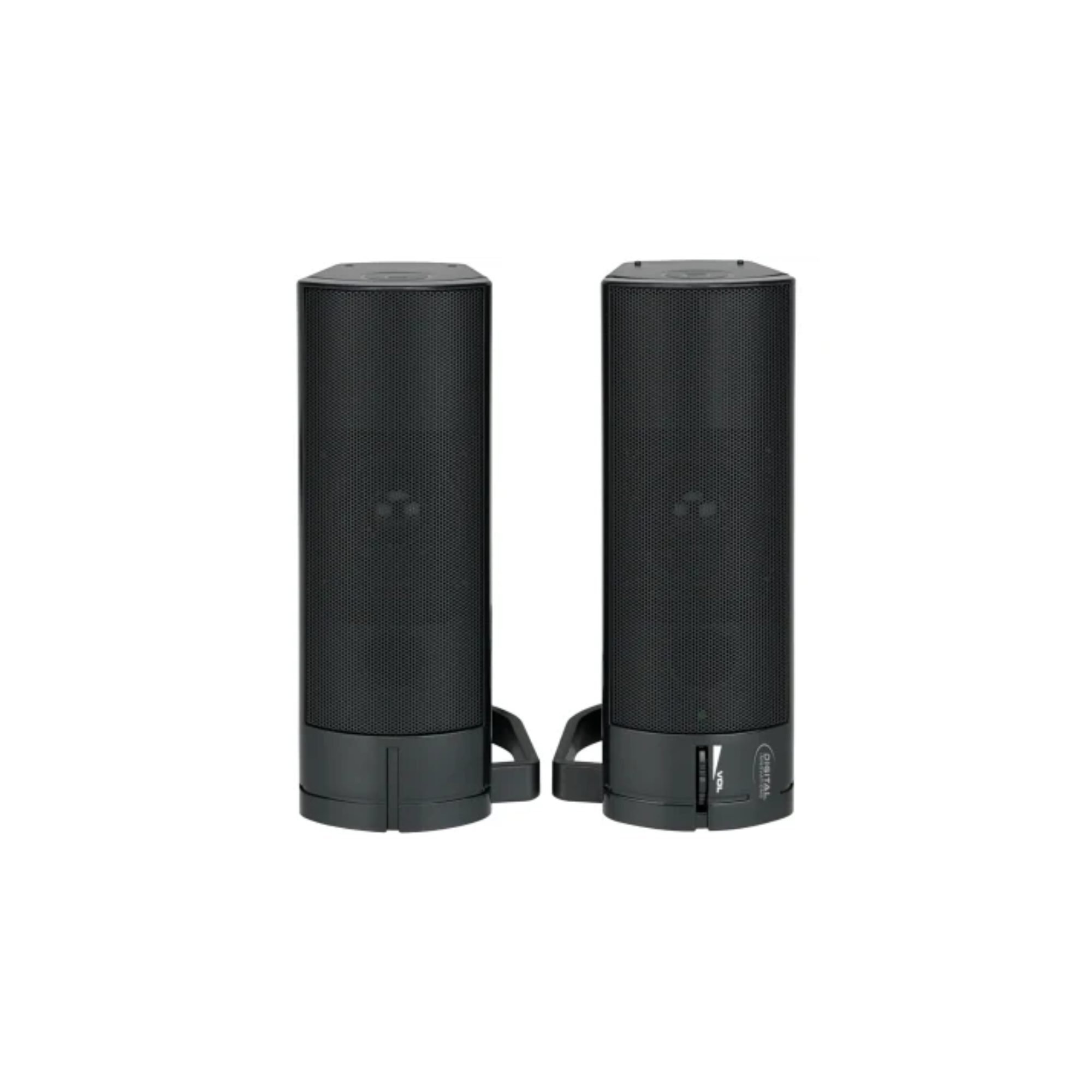The Digital Innovations™ AcoustiX Speaker Systerm 2.0 USB Desktop/Soundbar is a great way to pump up the volume of your computer experience. The acoustic convertible speakers transform from desktop towers into a soundbar. Magnetic shielding helps prevent interference from a TV to a PC. The system delivers quality stereo sound highlighted by clear treble and booming bass.