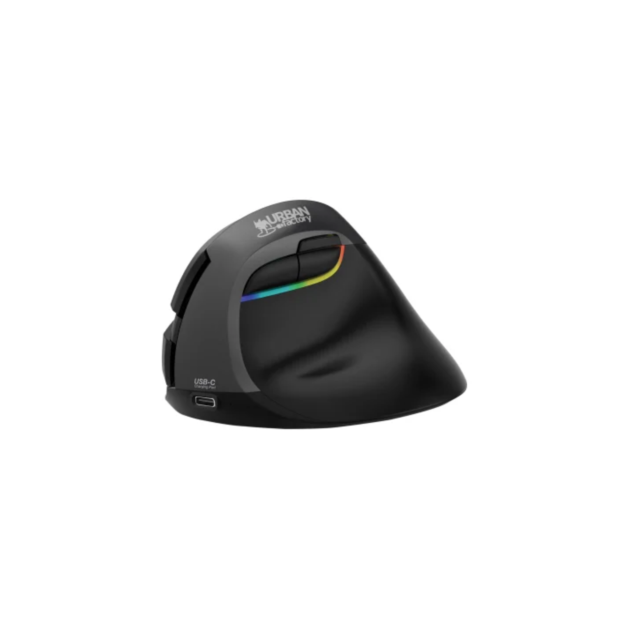 The ERGO PRO Mouse from Urban Factory is a combination 2.4 GHz and Bluetooth 5.0 vertical ergonomic mouse. The ERGO PRO for right-hand users has been designed to avoid twisting of the arm and wrist and thus relieve the user during prolonged use of the mouse. The resolution of the sensor can be adjusted from 800 to 4000 DPI on the side of the mouse. It is a rechargeable, 6-button mouse thanks to its USB-C port and built-in 1,000 mAh battery (up to 30 days working time). It can be connected either in 2.4 GHz using the supplied mini receiver or in Bluetooth 5.0 to ensure a wireless connection. Its silent clicks and the USB-C charging cable of 4.5 ft. will provide you optimal working comfort.